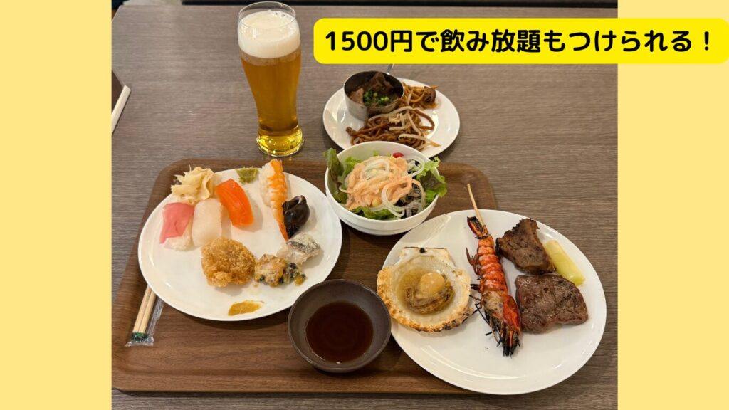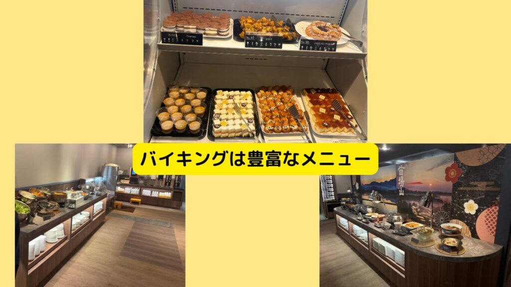 食事はビュッフェ形式で、メニュー数が多く、全体的に美味しかったです。